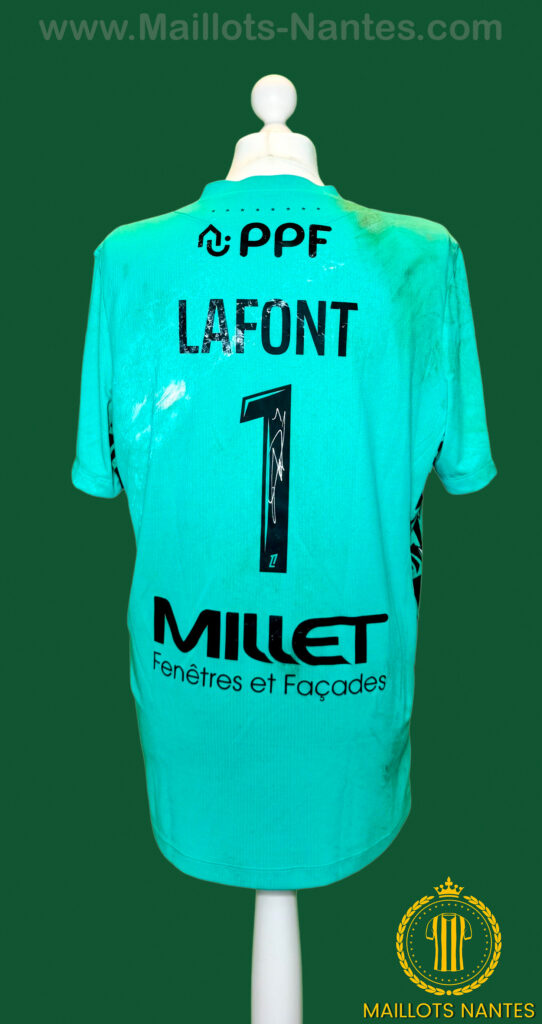 Découvrez un maillot unique porté par Alban Lafont lors de la 11ᵉ journée de Ligue 1, le 9 novembre 2024, au Stade Bollaert face au RC Lens. Ce match s’est inscrit dans une période de commémoration, avec un maillot arborant fièrement le Bleuet de France, symbole de mémoire et d’hommage aux anciens combattants et victimes de guerre.