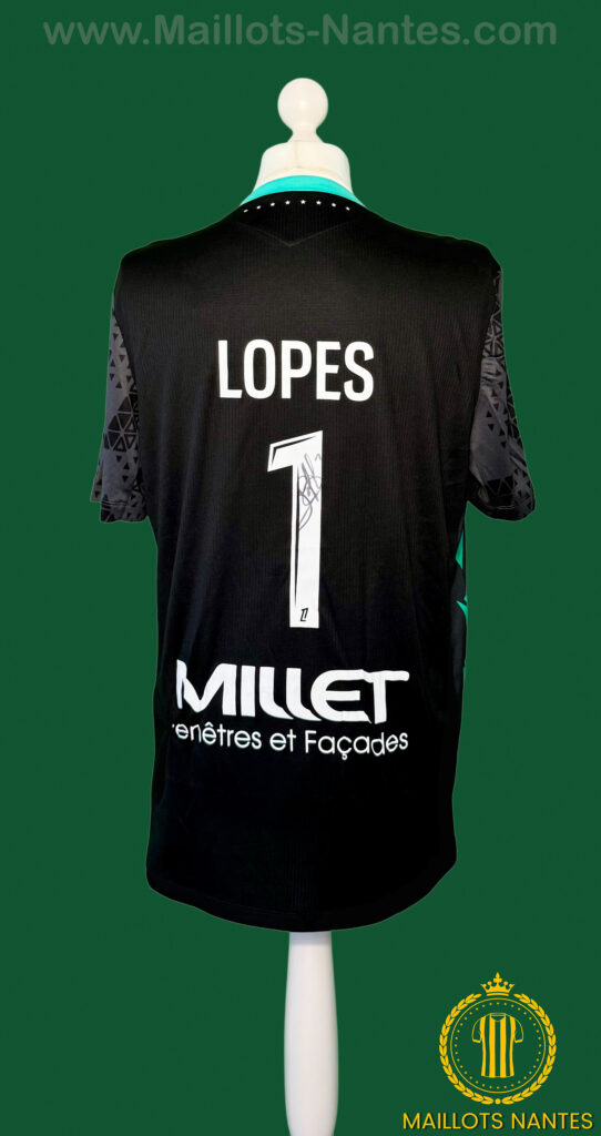 Anthony Lopes a porté ce maillot lors de la rencontre de Ligue 1 opposant le FC Nantes au Paris FC, disputée à la Beaujoire le 18 janvier 2026. Titulaire dans les buts, il participe à un match conclu par une défaite nantaise 2-1 face au club parisien.
