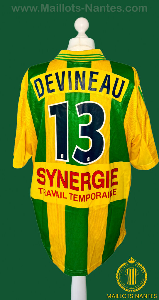 Ce maillot a été utilisé par Charles Devineau lors de l’un des déplacements du FC Nantes en fin de saison 1998/1999. Il correspond à l’un des trois matchs disputés à l’extérieur : au Havre (29ᵉ journée), à Montpellier (31ᵉ journée) ou à Bastia (33ᵉ journée).
