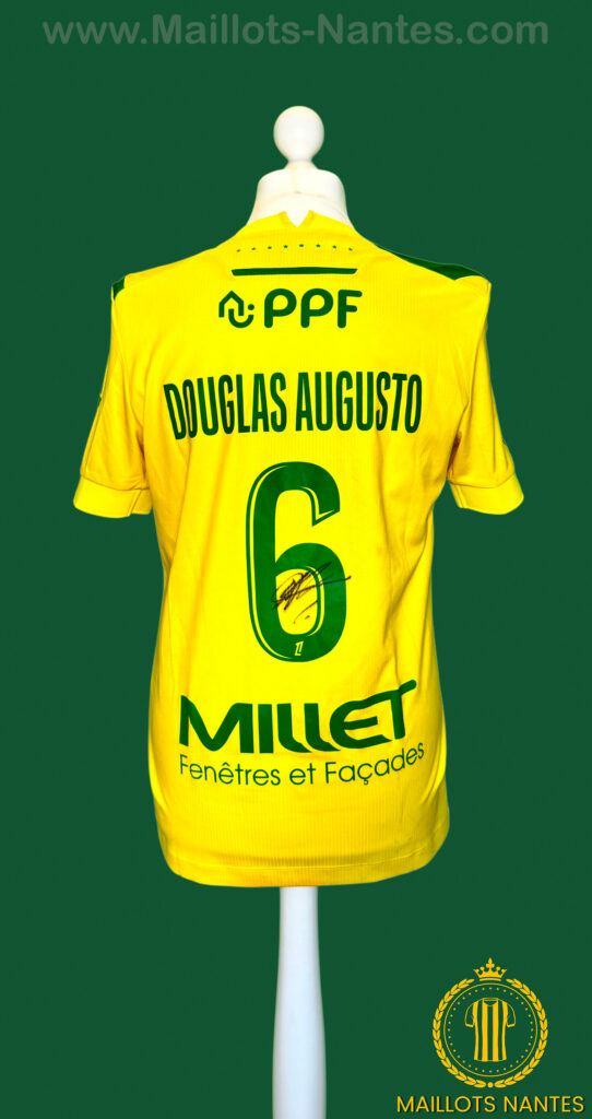 Maillot FC Nantes porté par Douglas Augusto lors du match comptant pour la 2ème journée de Ligue 1 le 25 Août 2024 contre Auxerre.