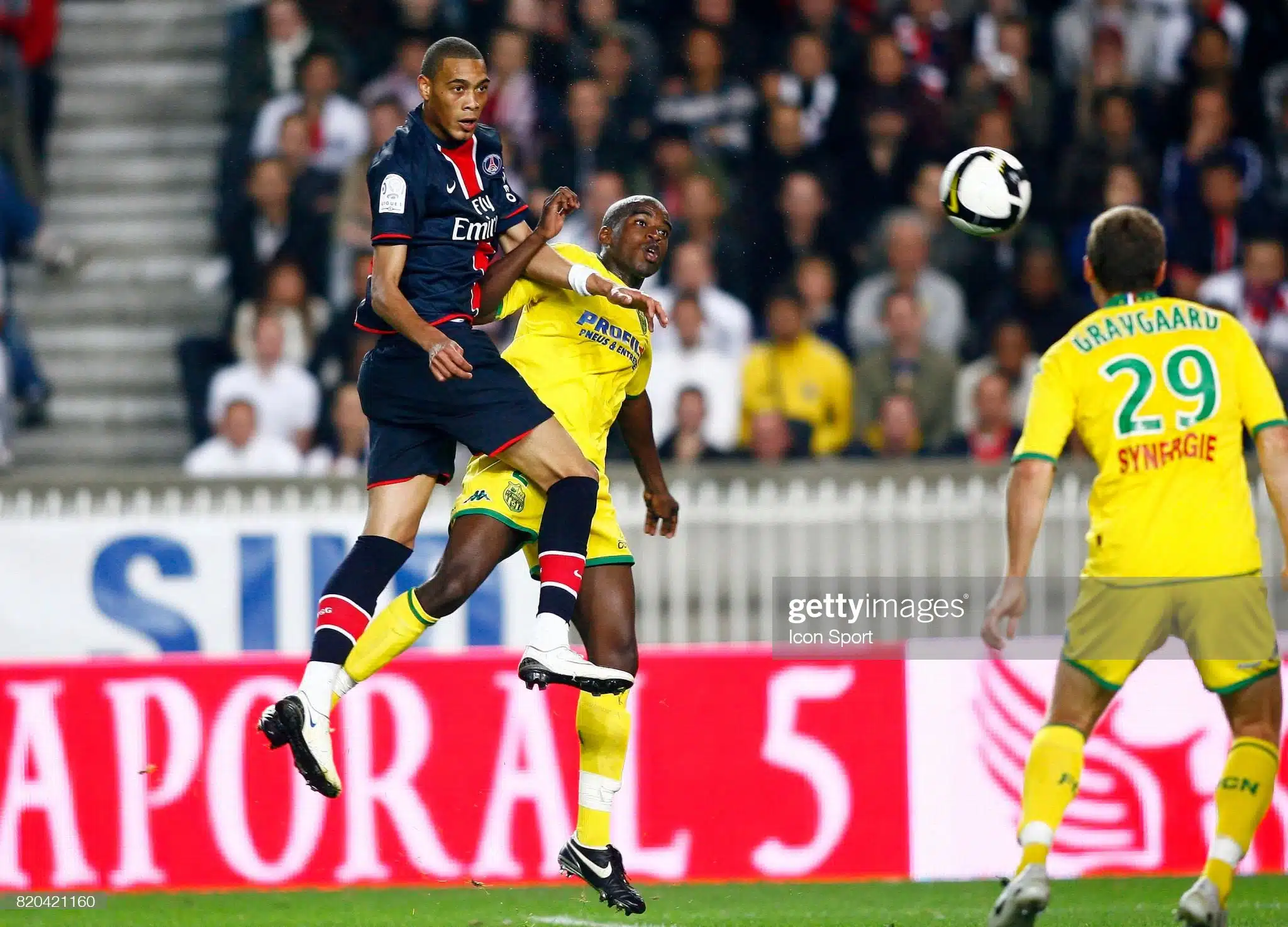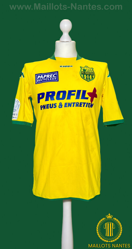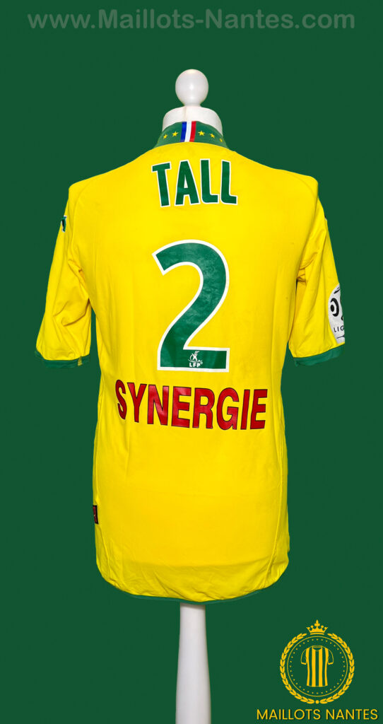 Maillot FC Nantes porté par Ibrahim Tall pour le match de la 5ème journée de Ligue 1 le 13 Septembre 2008 au Parc des Princes contre le Paris Saint Germain. Il s’agit du maillot domicile jaune avec le sponsor extérieur à l’avant et le sponsor domicile au dos.