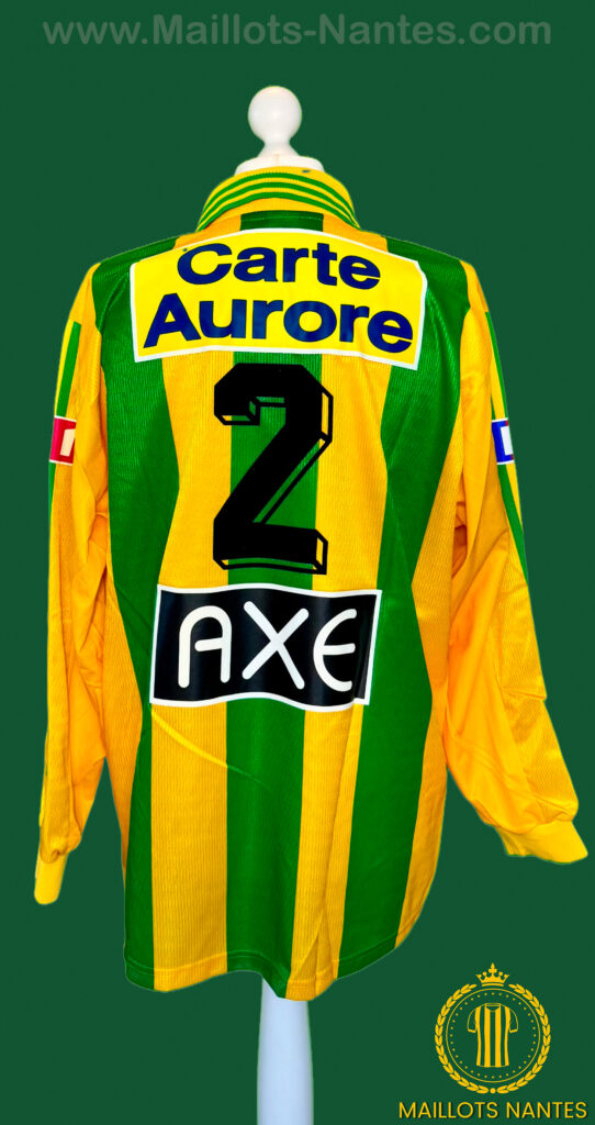 Jean-Marc Chanelet a utilisé ce maillot lors du déplacement du FC Nantes à La Roche-sur-Yon, en 1/32ème de finale de la Coupe de France, le 23 janvier 1999. Aligné en défense, il participe à la qualification nantaise acquise sur le score de 1-0 face au club vendéen. Cette rencontre marque l’entrée en lice des Canaris dans une édition de coupe qu’ils termineront par un sacre au Stade de France.