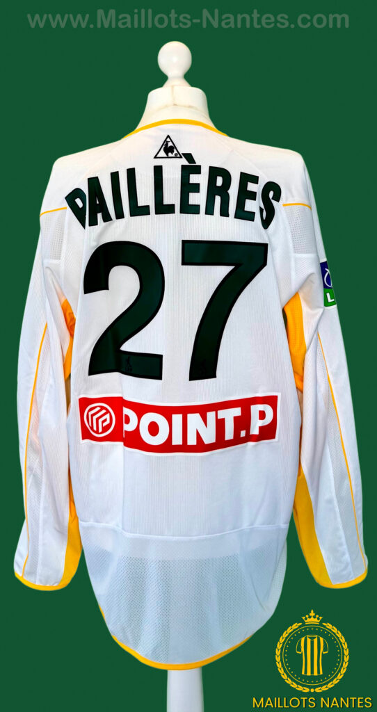 Maillot FC Nantes porté par Loic Pailleres 2003/2004 par Maillots-Nantes 24 février 2025 24 février 2025 489 vues 489 Loïc Pailleres a porté ce maillot lors du quart de finale de la Coupe de la Ligue face au Mans, le 14 janvier 2004. Cette année-là, les Canaris ont atteint la finale, marquant un parcours notable dans l’édition 2003/2004. Saison : 2003/2004. Compétition : Coupe de la Ligue. Marque : Le Coq Sportif. Sponsors : Lion, Creyf’s, Point P. 0 commentaires 0 FacebookTwitterEmail N'hésitez pas à consulter ces autres maillots Maillot FC Nantes porté par Wilfried Dalmat 2001/2002 Maillot FC Nantes porté par Emiliano Sala 2016/2017 Maillot FC Nantes porté par Yacine Bammou 2017/2018 Maillot FC Nantes porté par Mickaël Landreau 2003/2004 Maillot FC Nantes préparé pour Maxime Dupé 2018/2019 Maillot FC Nantes préparé pour Denis Petric 2019/2020 Maillot FC Nantes porté par Mario Yepes 2003/2004 Maillot FC Nantes porté par Frédéric Da Rocha 2002/2003 Maillot FC Nantes porté par Claude Makélélé 1992/1993 Laisser un commentaire Annuler réponse