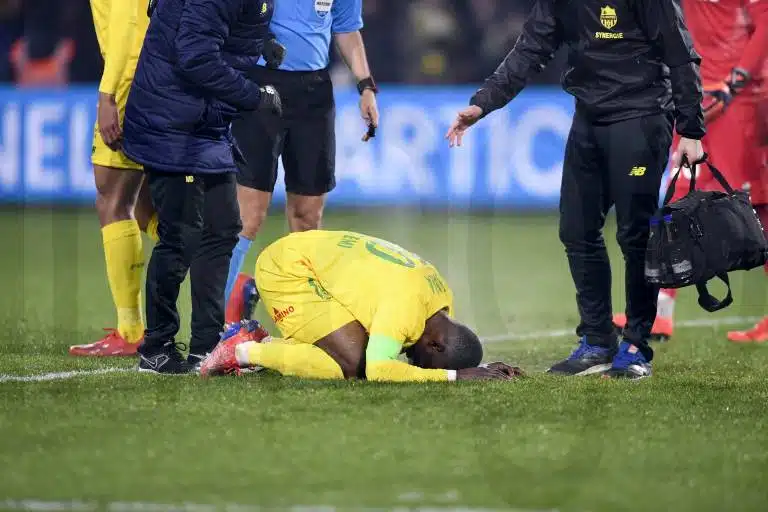 Maillot FC Nantes porté par Majeed Waris lors du match comptant pour la 22ème journée de Ligue 1 le 30 Janvier 2019 contre l’AS Saint Etienne. Maillot en soutien à Emiliano Sala où les noms de tous les joueurs ont été remplacés par celui d’Emiliano et où le message Animo Emi est floqué en bas du maillot.