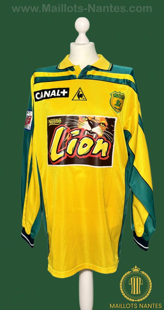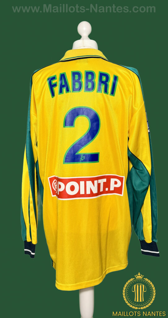Maillot porté par Nestor Fabbri lors du quart de finale de la Coupe de la Ligue le 13 mars 2001 à Troyes. Ce maillot renvoie au quart de finale joué au Stade de l’Aube, où le FC Nantes s’impose 1-0 face à Troyes grâce à un but de Viorel Moldovan.