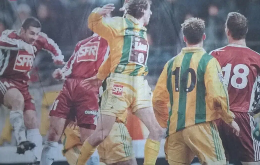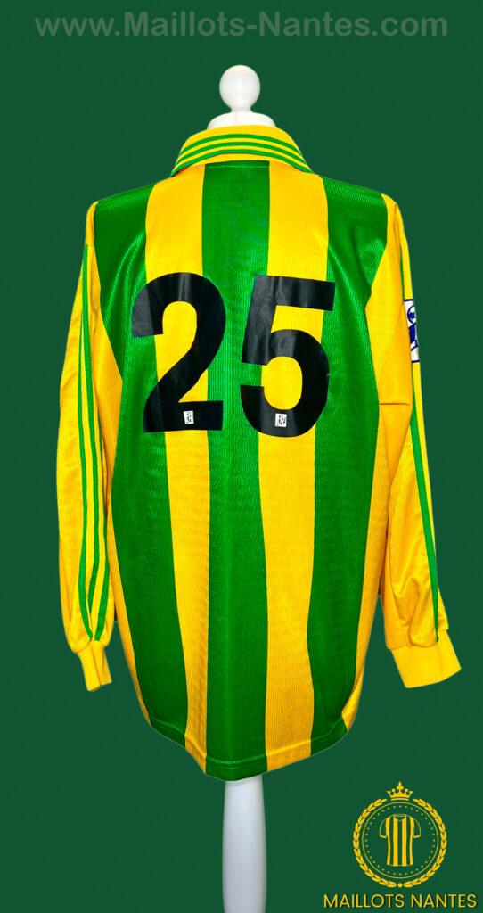 Maillot FC Nantes porté par Patrick Suffo 1998/1999 par Maillots-Nantes 22 novembre 2023 22 novembre 2023 910 vues 910 Maillot FC Nantes porté par Patrick Suffo lors du match des 1/16ème de finale de Coupe de la Ligue le 9 Janvier 1999 à Metz. Lors de cette défaite 1-0, Patrick Suffo est entré à la 74ème minute. Saison : 1998/1999. Compétition : Coupe de la Ligue. Marque : Adidas. Sponsors : Lion, Canal +. 0 commentaires 0 FacebookTwitterEmail N'hésitez pas à consulter ces autres maillots Maillot FC Nantes porté par Mickaël Landreau 2005/2006 Maillot FC Nantes porté par le Numéro 7 1988/1989 Maillot FC Nantes porté par Joel Henry 1990/1991 Maillot FC Nantes porté par Jean-Marc Chanelet 1995/1996 Maillot FC Nantes porté par Jordan Veretout 2012/2013 Maillot FC Nantes préparé pour Franck Renou 1996/1997 Maillot FC Nantes porté par Jean Michel Ferri 1991/1992 Maillot FC Nantes porté par Jocelyn Gourvennec 1997/1998 Maillot FC Nantes porté par Marama Vahirua 2000/2001 Laisser un commentaire Annuler réponse
