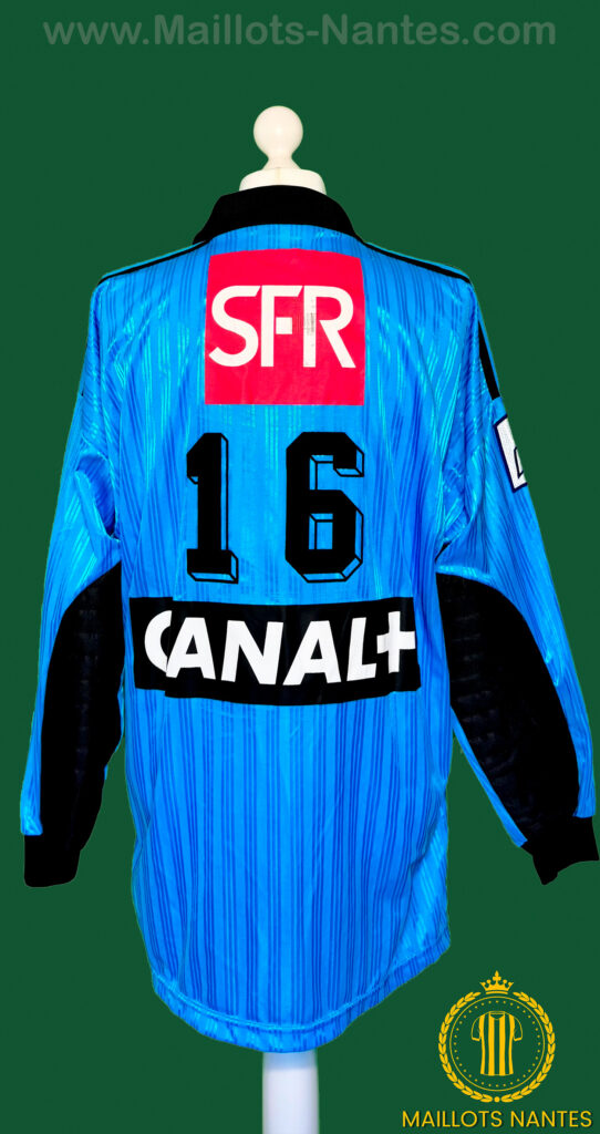 Maillot préparé pour Dominique Casagrande lors du 1/8ᵉ de finale de la Coupe de la Ligue face à Guingamp, le 6 janvier 1996 à la Beaujoire. Ce jour-là, David Marraud débute dans les buts, tandis que Casagrande reste remplaçant.