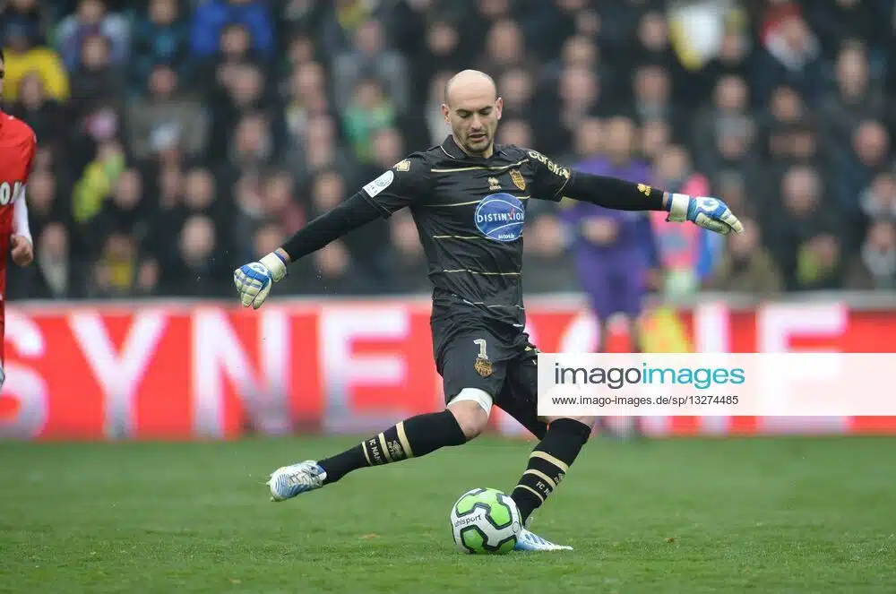 Maillot FC Nantes préparé pour Erwin Zelazny pour le match comptant pour la 30ème journée de Ligue 2 le 30 Mars 2013 face à Monaco. Sponsor Distinxion utilisé à trois reprises cette saison là, contre Auxerre à l’aller et au retour et contre Monaco à domicile. Erwin Zelazny est resté sur le banc pour ce match.