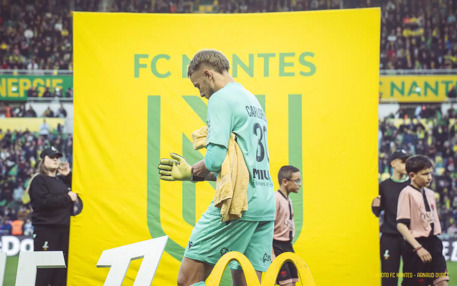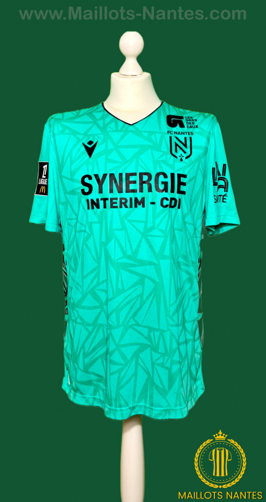 Ce maillot de gardien a été préparé pour Patrik Carlgren pour les matchs à Nice et à Rennes puis contre le PSG et Toulouse à la Beaujoire, soit de la 28e à la 31e journée de la saison 2024/2025 du FC Nantes en Ligue 1 .