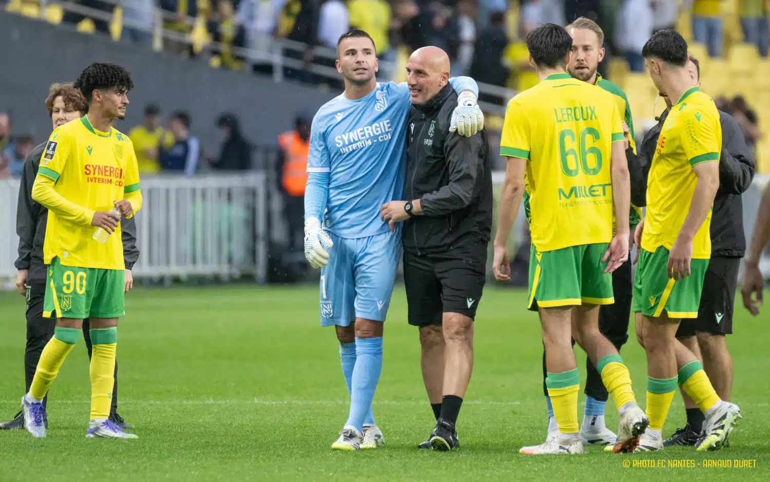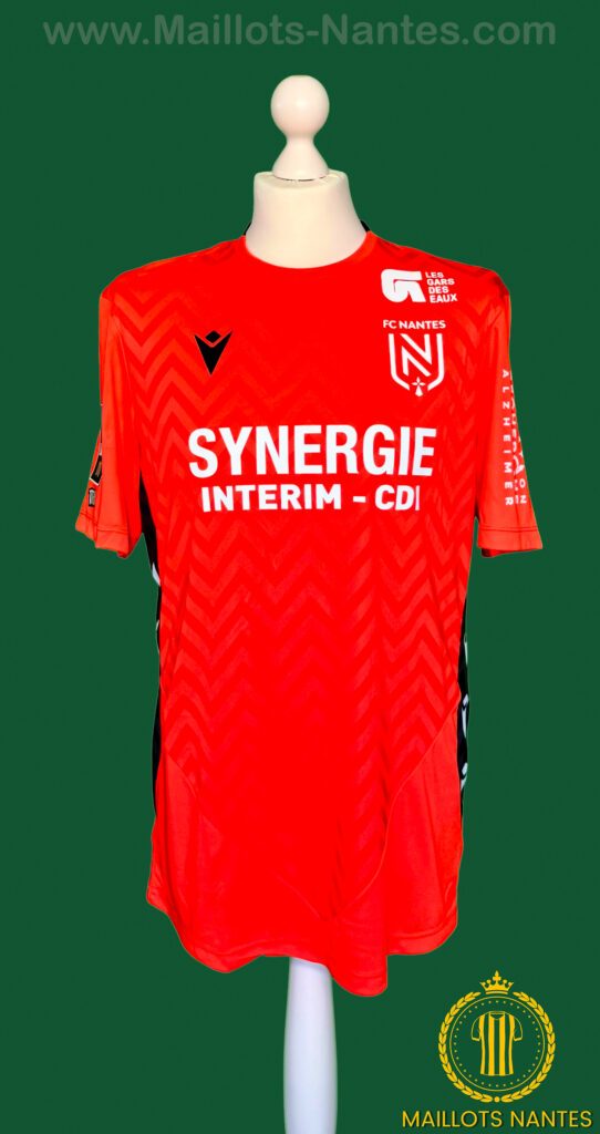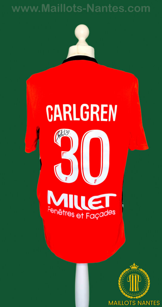 Ce maillot a été préparé pour Patrik Carlgren lors de la 5ème journée de Ligue 1 opposant le FC Nantes au Stade Rennais, le 20 septembre 2025. À l’occasion de cette rencontre, le club nantais et son partenaire LNA Santé ont renouvelé leur engagement en faveur de la recherche contre la maladie d’Alzheimer. Pour symboliser cette action, le logo de LNA Santé, habituellement apposé sur la manche gauche, a été remplacé par celui de la Fondation Recherche Alzheimer.