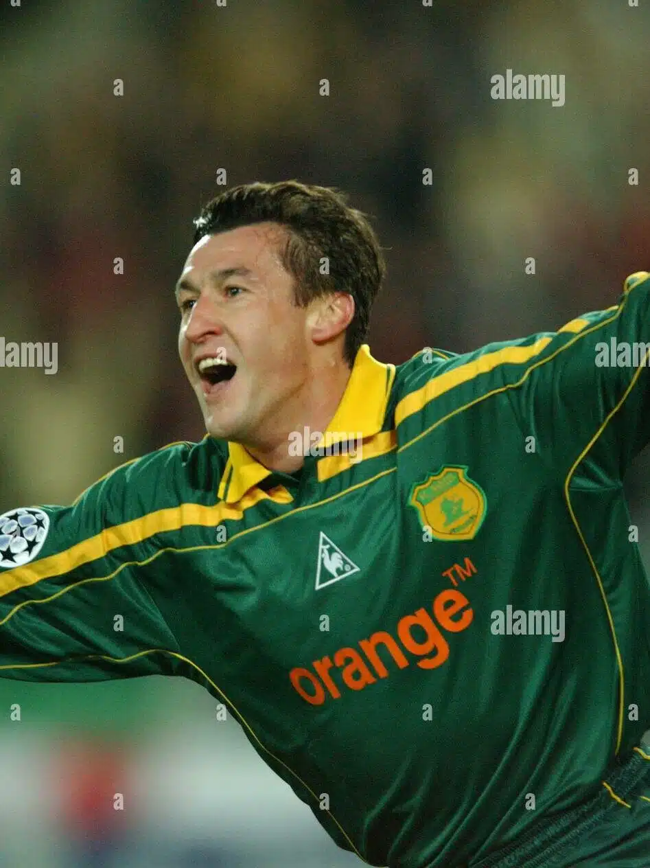 Maillot FC Nantes préparé pour Viorel Moldovan pour un match de Ligue des Champions2001/2002. Malheureusement Viorel Moldovan ne jouera que 3 matchs sur les 12 disputés en Ligue des Champions cette saison et il n’utilisa que des maillots manches longues.